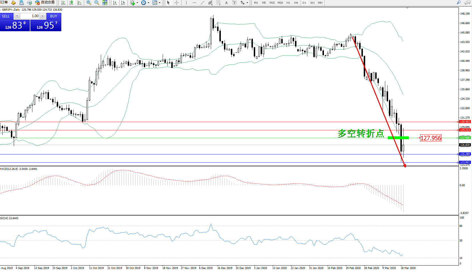 英镑兑日元刺穿129.00关口后回撤,新冠肺炎疫情危机后,英国央行已两次进行紧急降息,陷入美联储、日本央行已经陷入的恐慌性模式。英国央行金融危机时也曾将量化宽松作为市场压力时期采取的信贷宽松措施,目前英国央行已经摊牌,货币政策储备所剩无几。疫情迫使英国推迟了与欧盟的贸易谈判,并挤占了政府的时间和资源,这让约翰逊延长脱欧过渡期的压力越来越大。如果英国和欧盟不能在今年年底前达成贸易协议,英国将不得不硬脱欧,但是现在不断蔓延的疫情使得这种可能性越来越大。