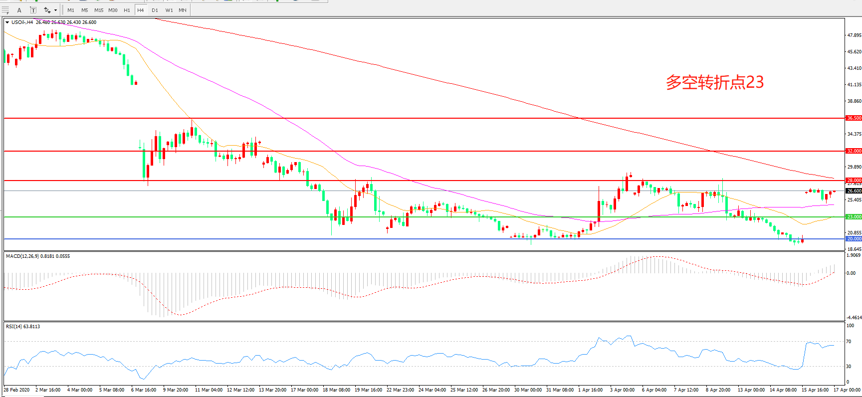 周四(4月16日),OPEC发布月度报告,因新冠疫情造成的历史性冲击”,市场对原油的需求降至30年最低水平。美国WTI原油由于移仓换月,价格出现较大变化,但日内波幅较小,窄幅震荡后收报26.40美元/桶。