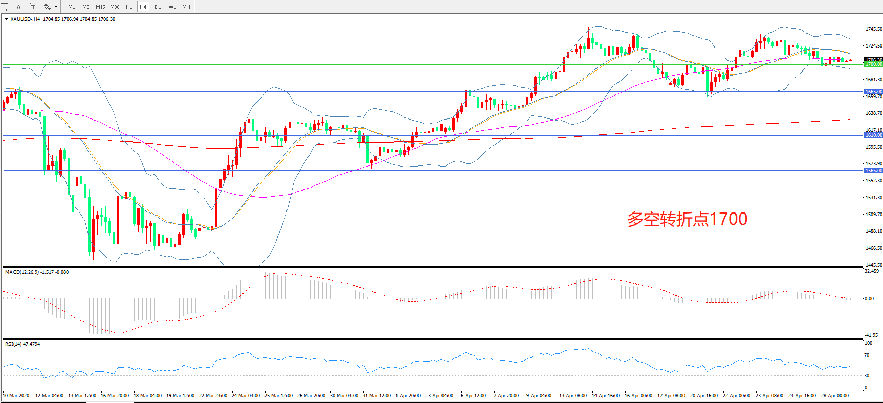 多空转折点:1700.00