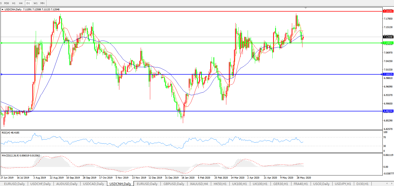 美元兑人民币USDCNH    日线图: