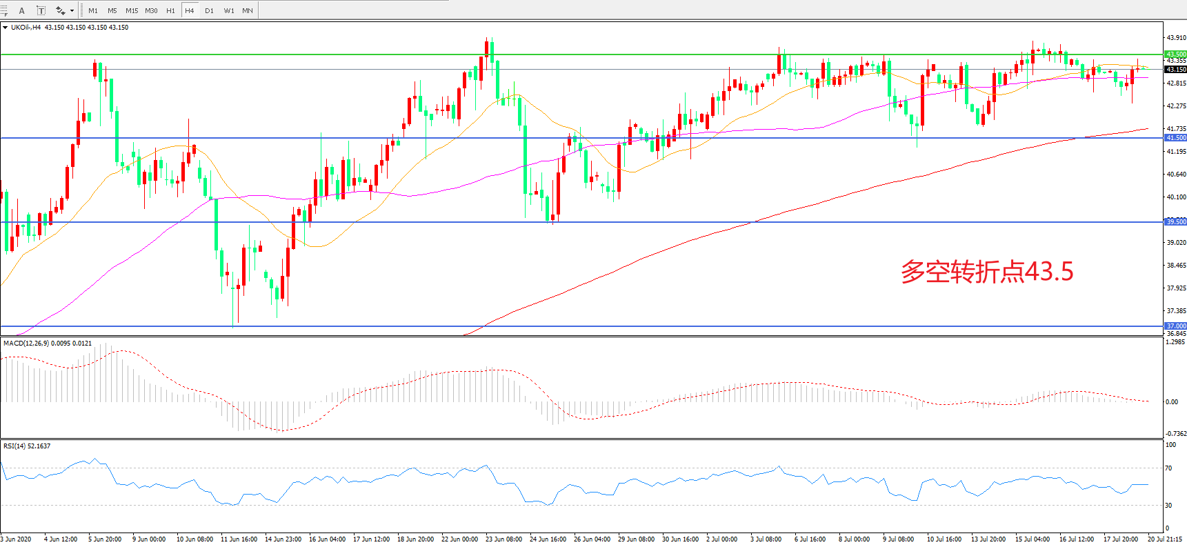 周一(7月20日), 美国新冠确诊激增增和美国消费者信心下降,削弱了原油需求回升的前景 ,布伦特油价一度快速下行,但在刺穿42美元之后再次上演了反转大戏,最终收报40.77美元/桶。短期来看,油市整体仍陷入区间震荡之内,市场观望气氛较浓。