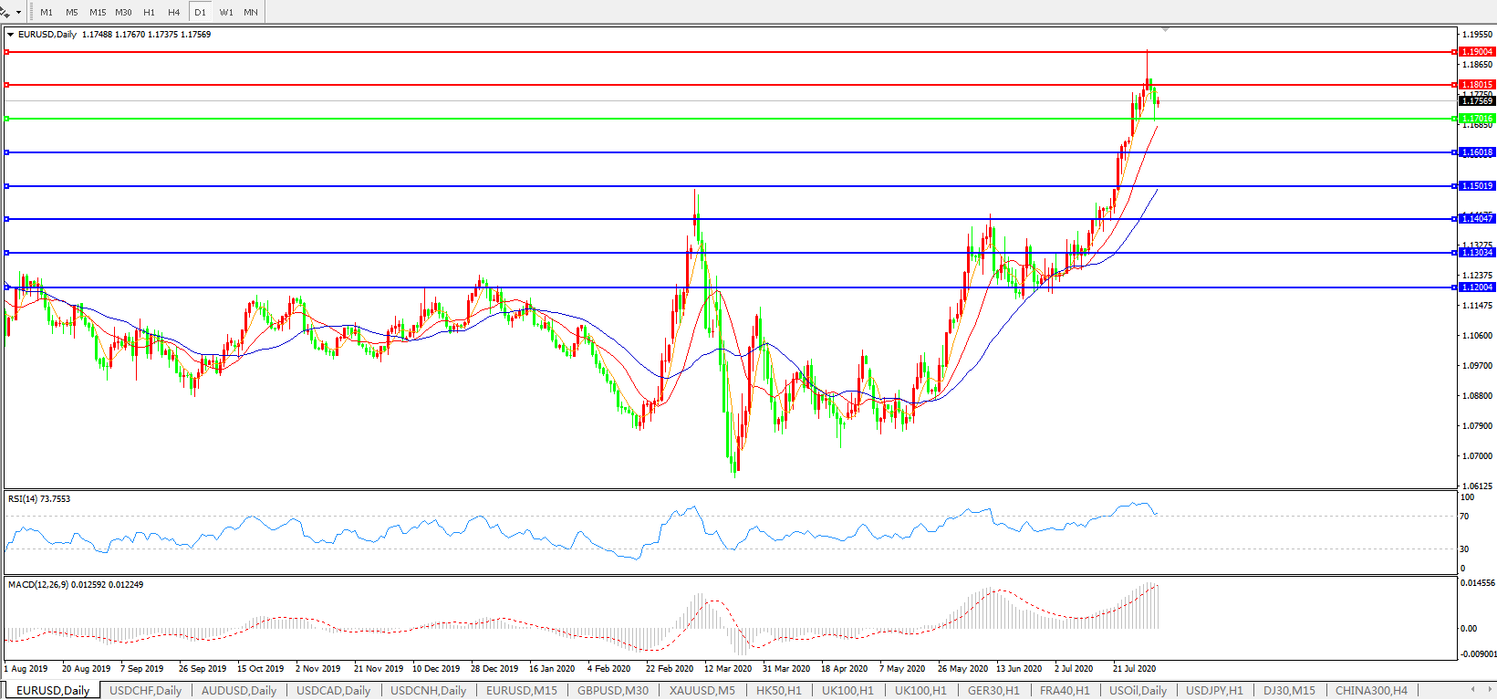 欧元兑美元EURUSD   日线图: