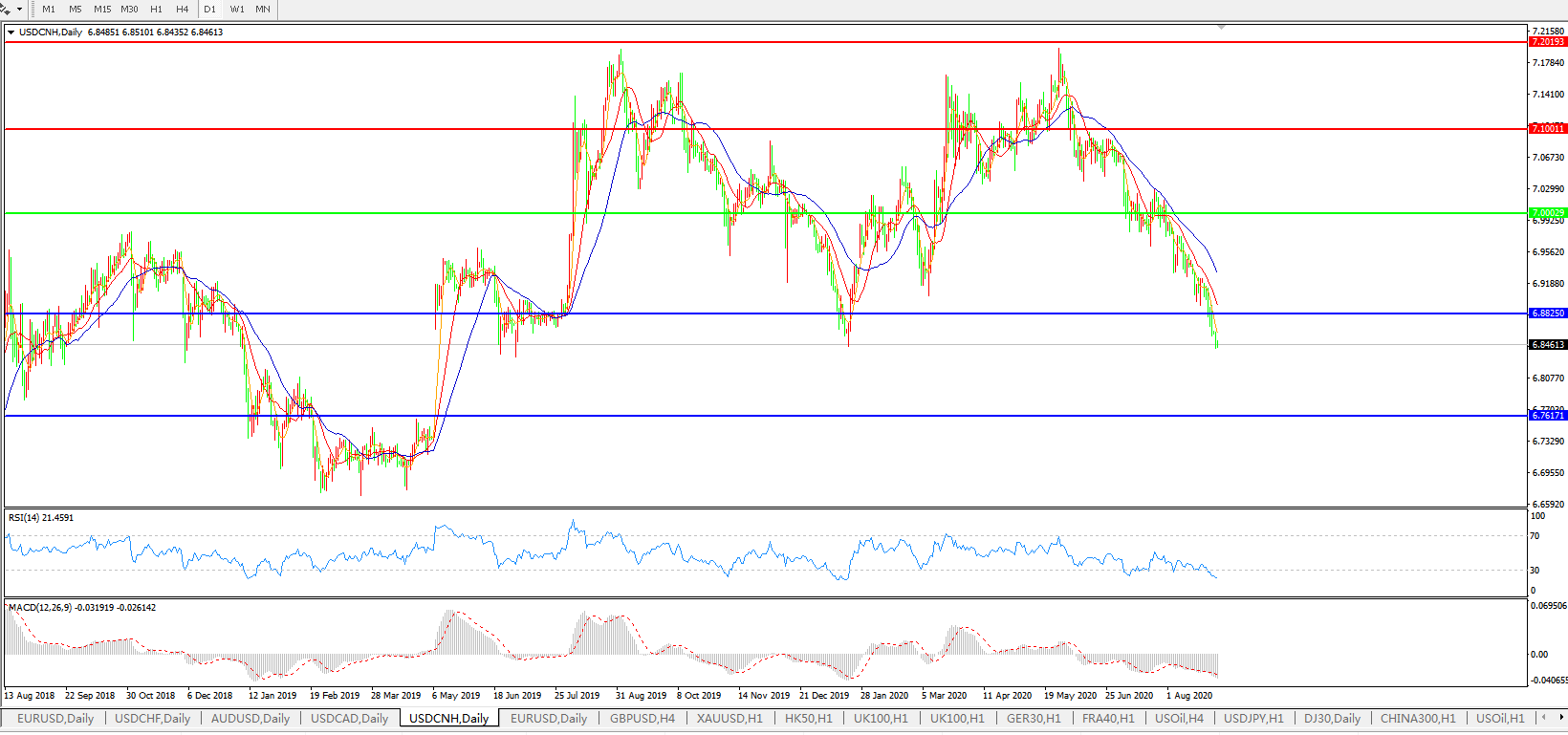 交易策略:在7.0000之下,看跌,目标价位为6.8800,然后为6.7615。
