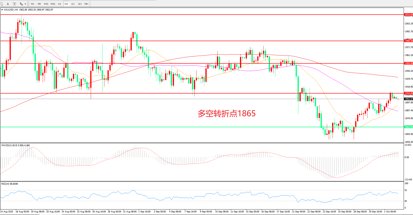 周三(10月1日),美元指数继续走软,金价趁势上行,收报1902.50美元/盎司。对于美元与黄金的前景,主要取决于未来一个季度的经济数据表现,而今晚的非农会拉开这个序幕。而且这也是美国大选(11月3日)前的最后一份非农报告,重要程度毋需多言。