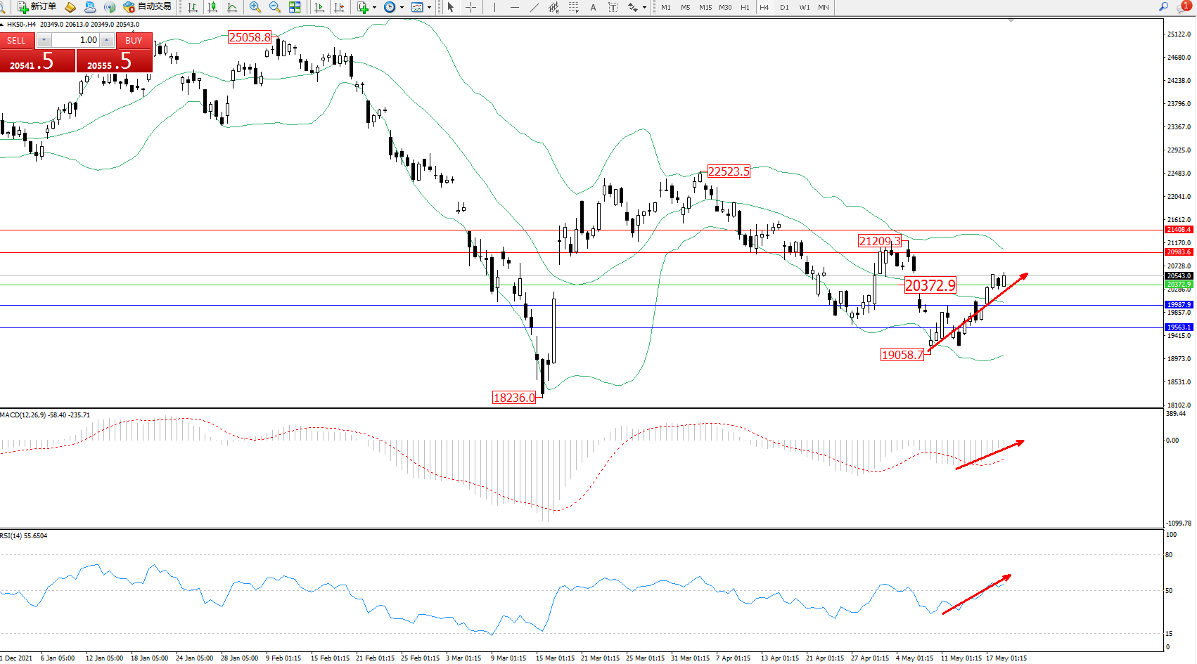 香港恒生指数5月18日(周三)收盘上涨41.76点,涨幅0.2%,报20644.28点;港股午后拉升三大指数均转涨,较昨日大反弹相比市场情绪稍显谨慎。今日南下资金净流入21.57亿港元,大市成交额1126亿港元。