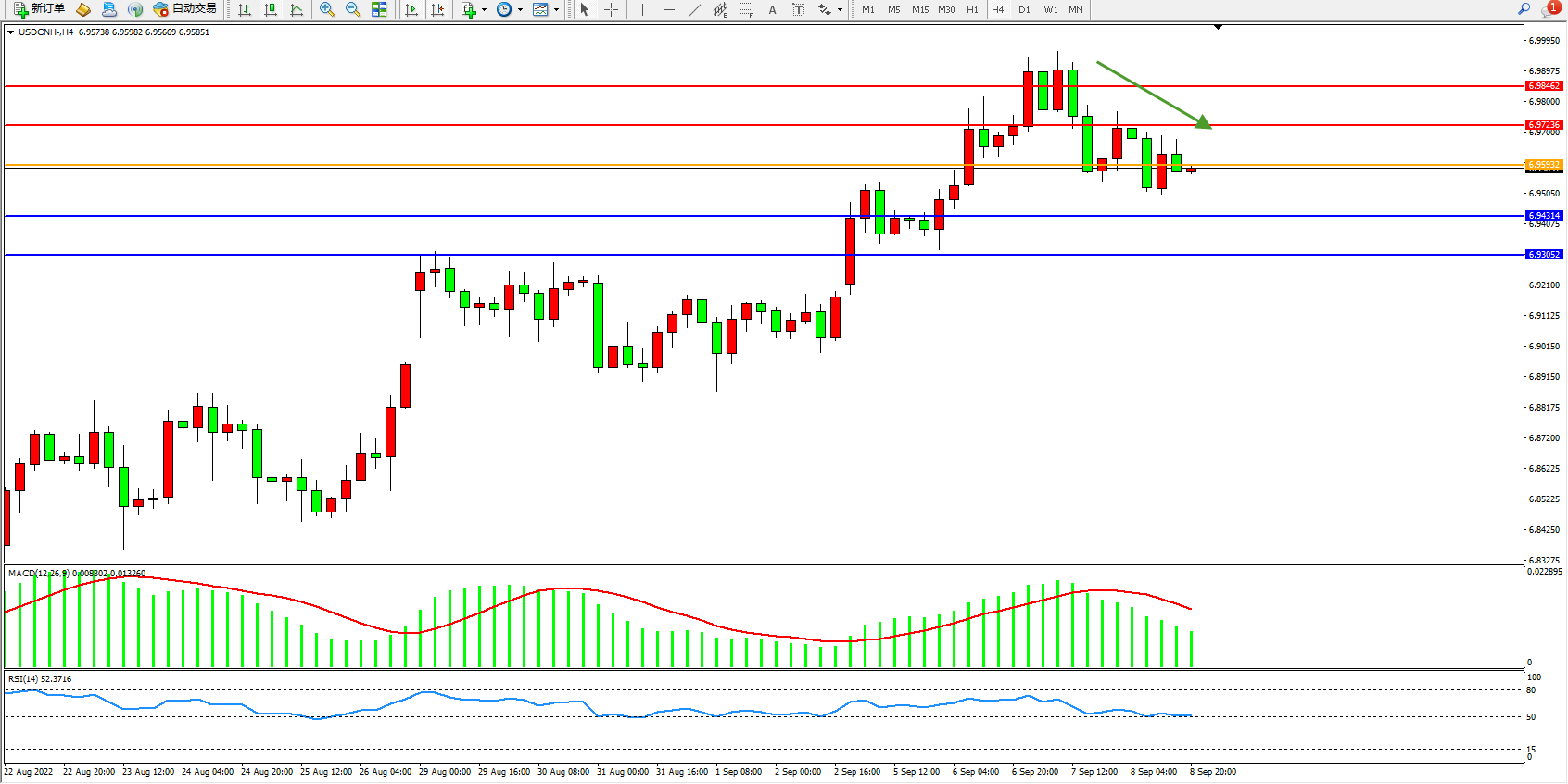 备选策略:6.95932上方看涨,目标6.97236、6.68462