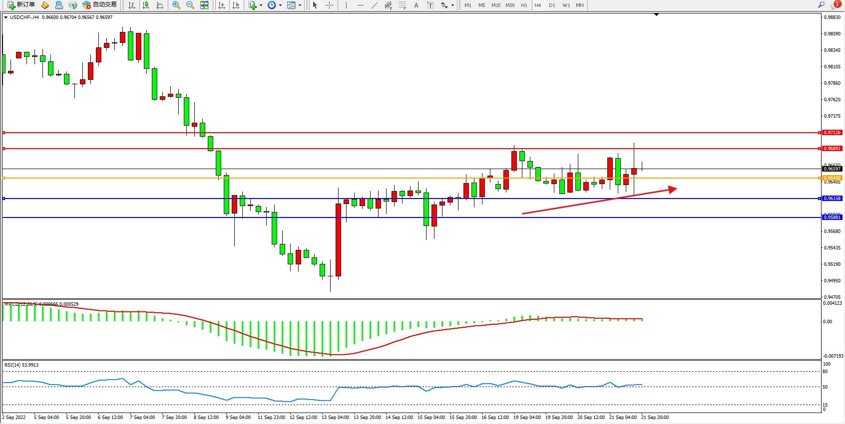 美元兑瑞郎维持0.96597附近震荡,美联储将联邦基金利率目标区间提高75个基点,至3.00%-3.25%,市场关注瑞士9月央行政策利率(%)。