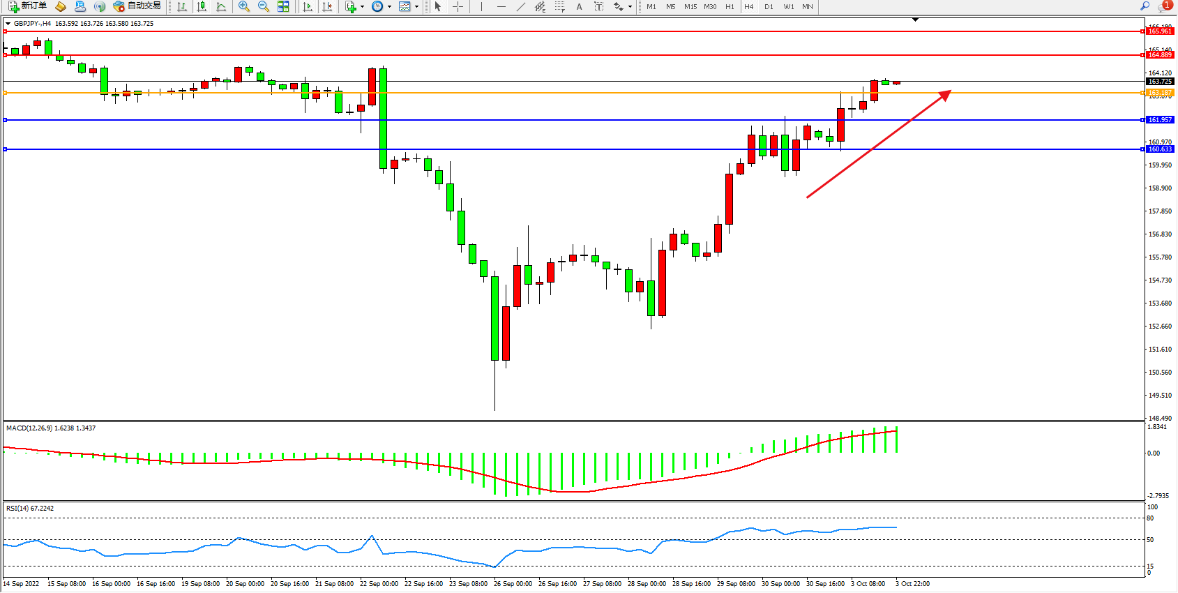 交易策略:163.187上方看涨,目标164.889、165.961