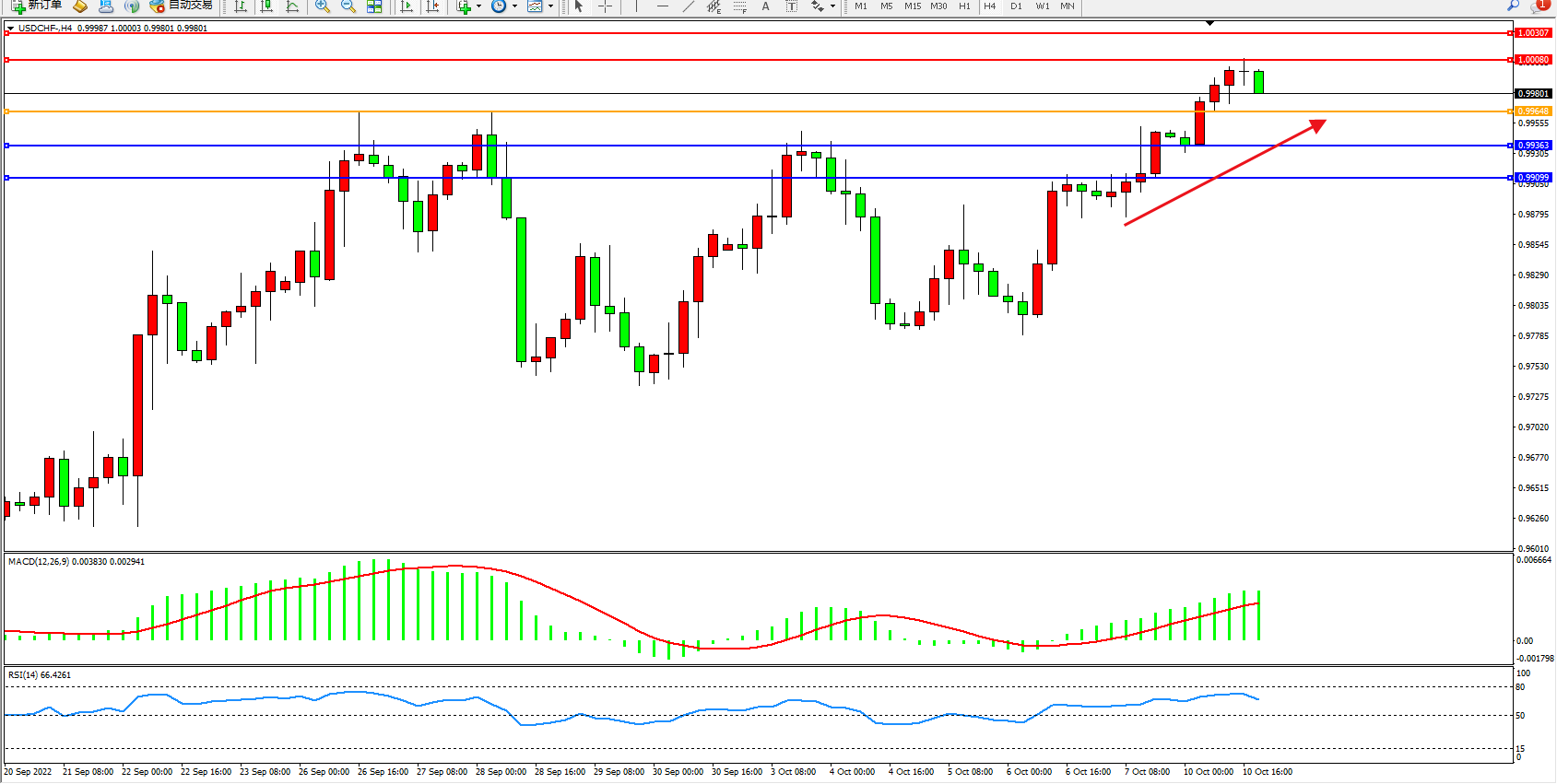 美元兑瑞郎维持0.99801附近震荡,乌克兰首都基辅受导弹袭击,俄乌地缘局势依然紧张,市场也担心美联储和全球多数央行的进一步加息会加大全球经济衰退风险,瑞郎避险情绪逐渐升温。