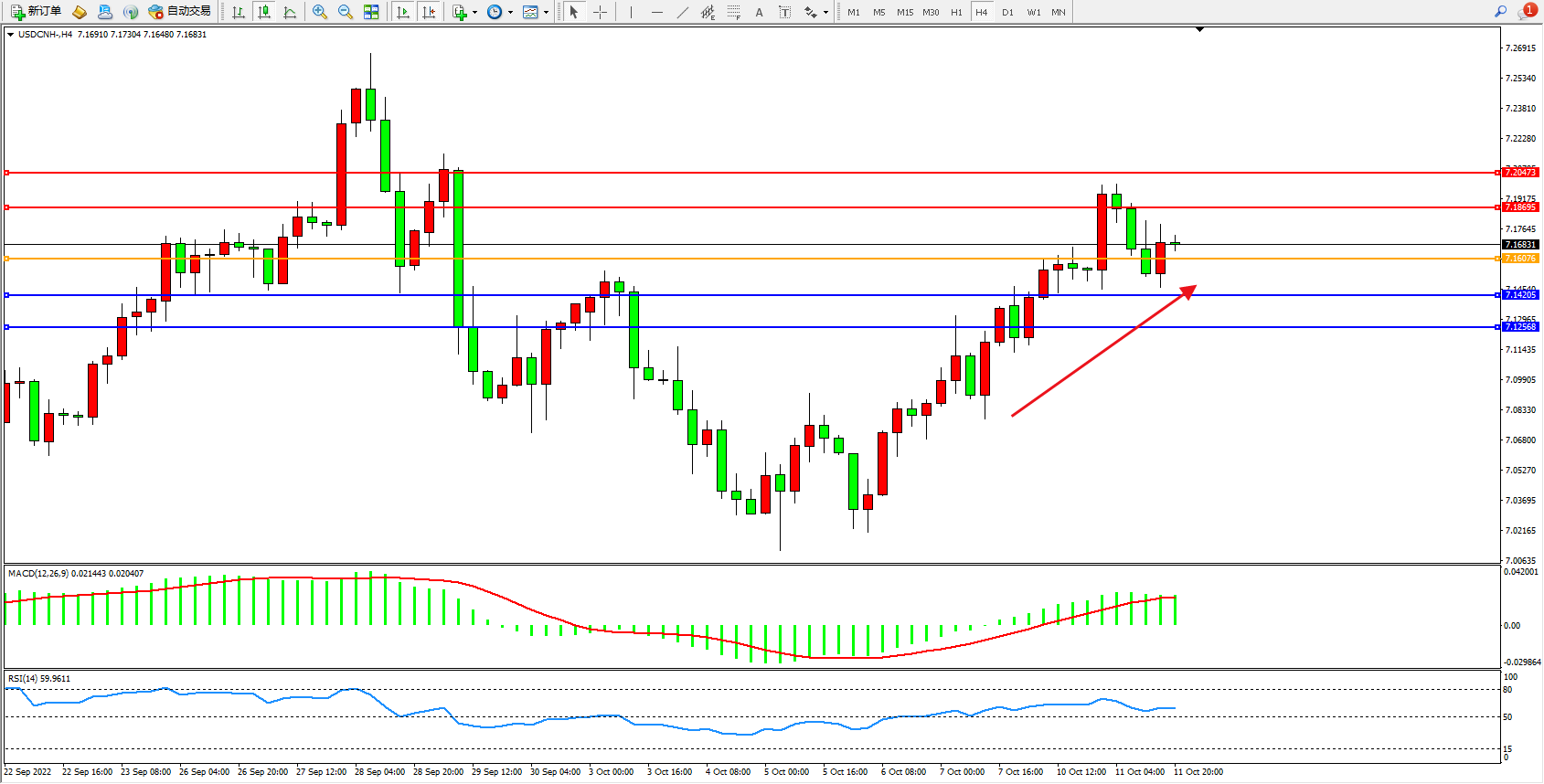交易策略:7.16076上方看涨,目标7.18695、7.20473