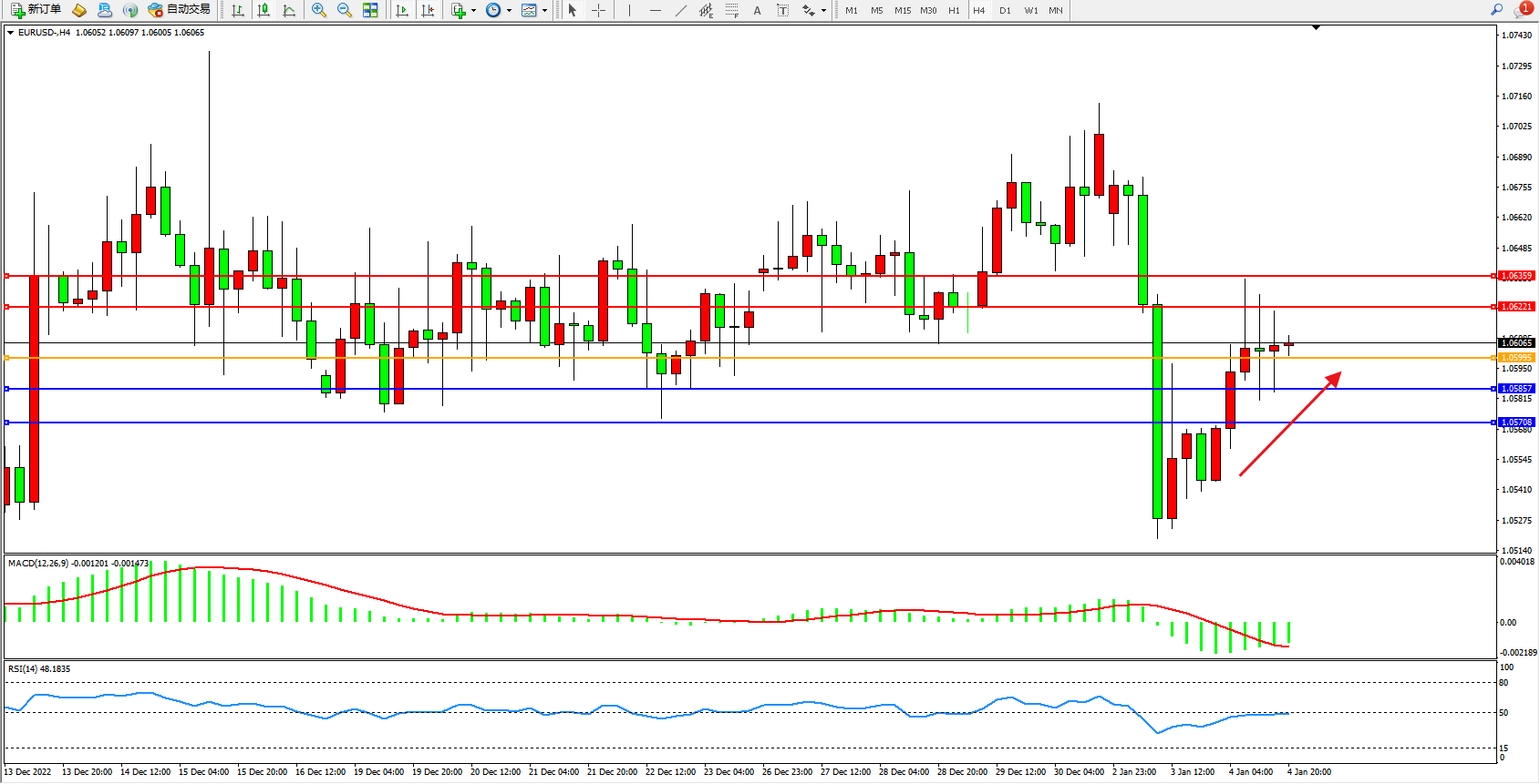 欧元兑美元维持1.06065附近震荡,随着能源和服务业通胀放缓,法国12月调和CPI年率意外录得6.7%。市场认为,欧元区通胀可能已经见顶的迹象应该可以让欧洲央行的政策制定者松一口气。