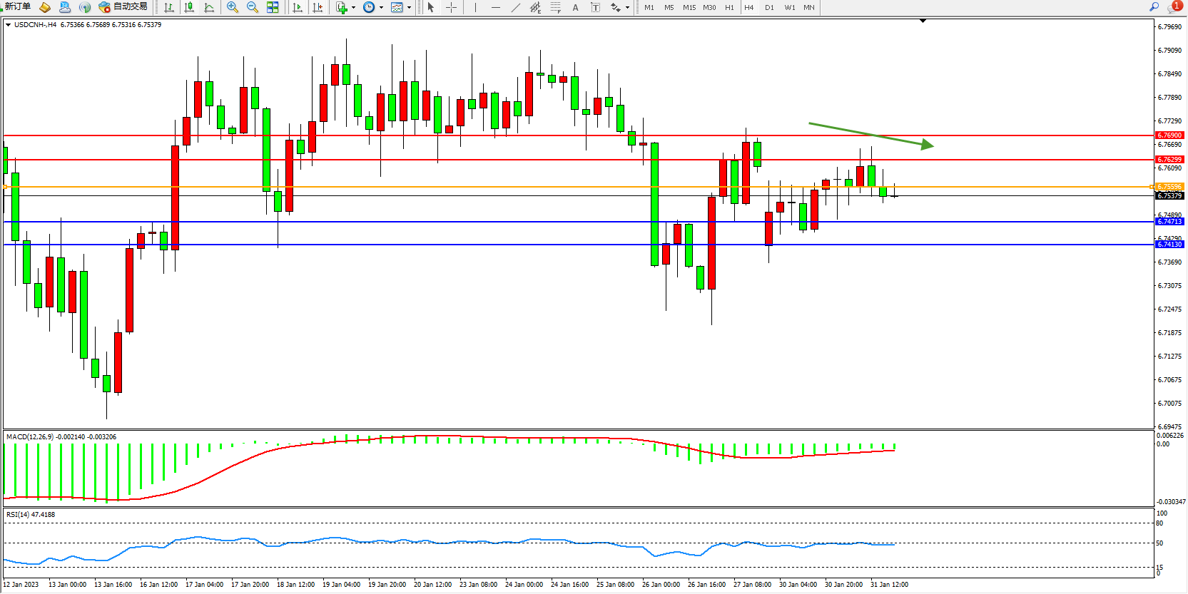 备选策略:6.75596上方看涨,目标6.76299、6.76900