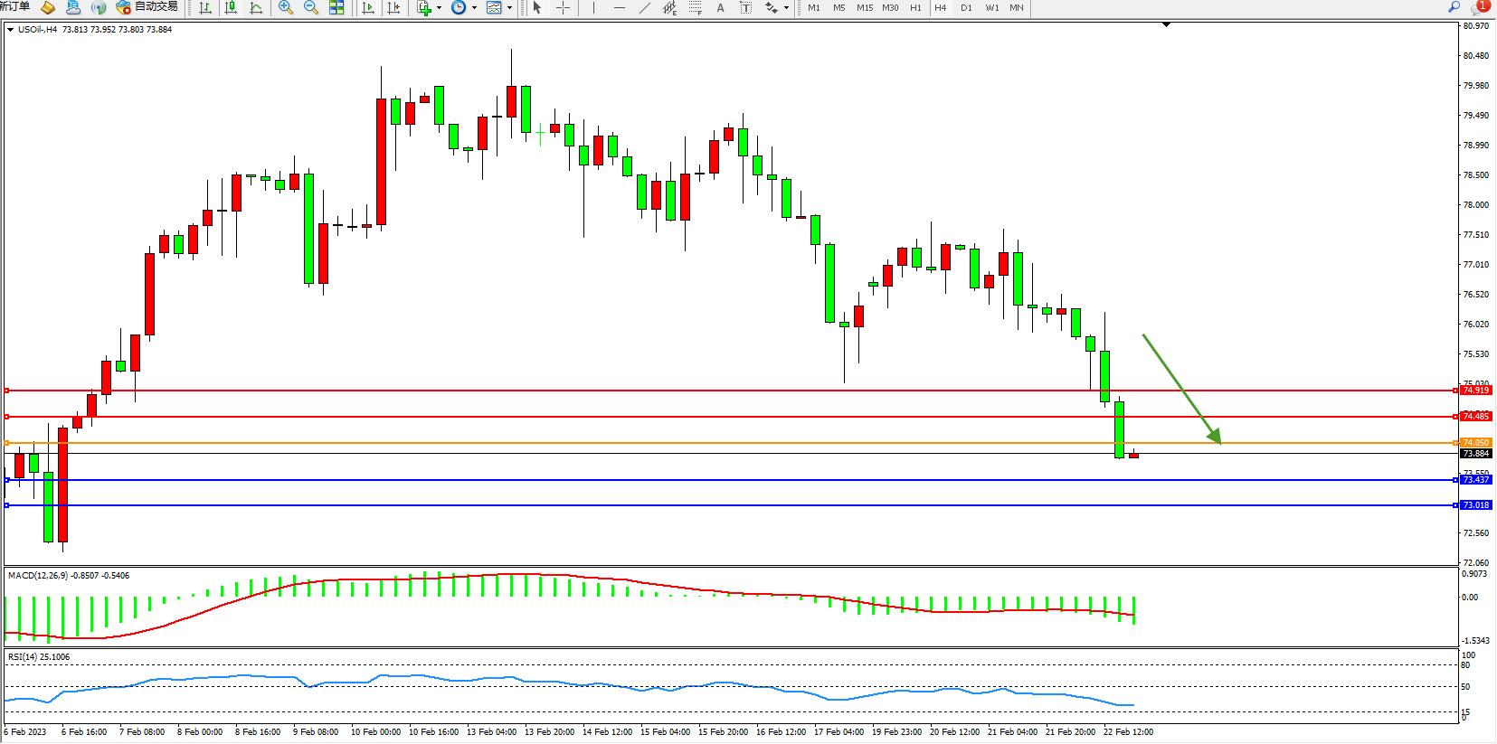 原油维持73.884附近震荡,全球供应趋紧和中国需求不断增长的预期放慢了价格跌势。中国石油进口将在2023年达到创纪录的规模,以满足对运输燃料需求增加,中国旅游市场将在夏季得到蓬勃发展。