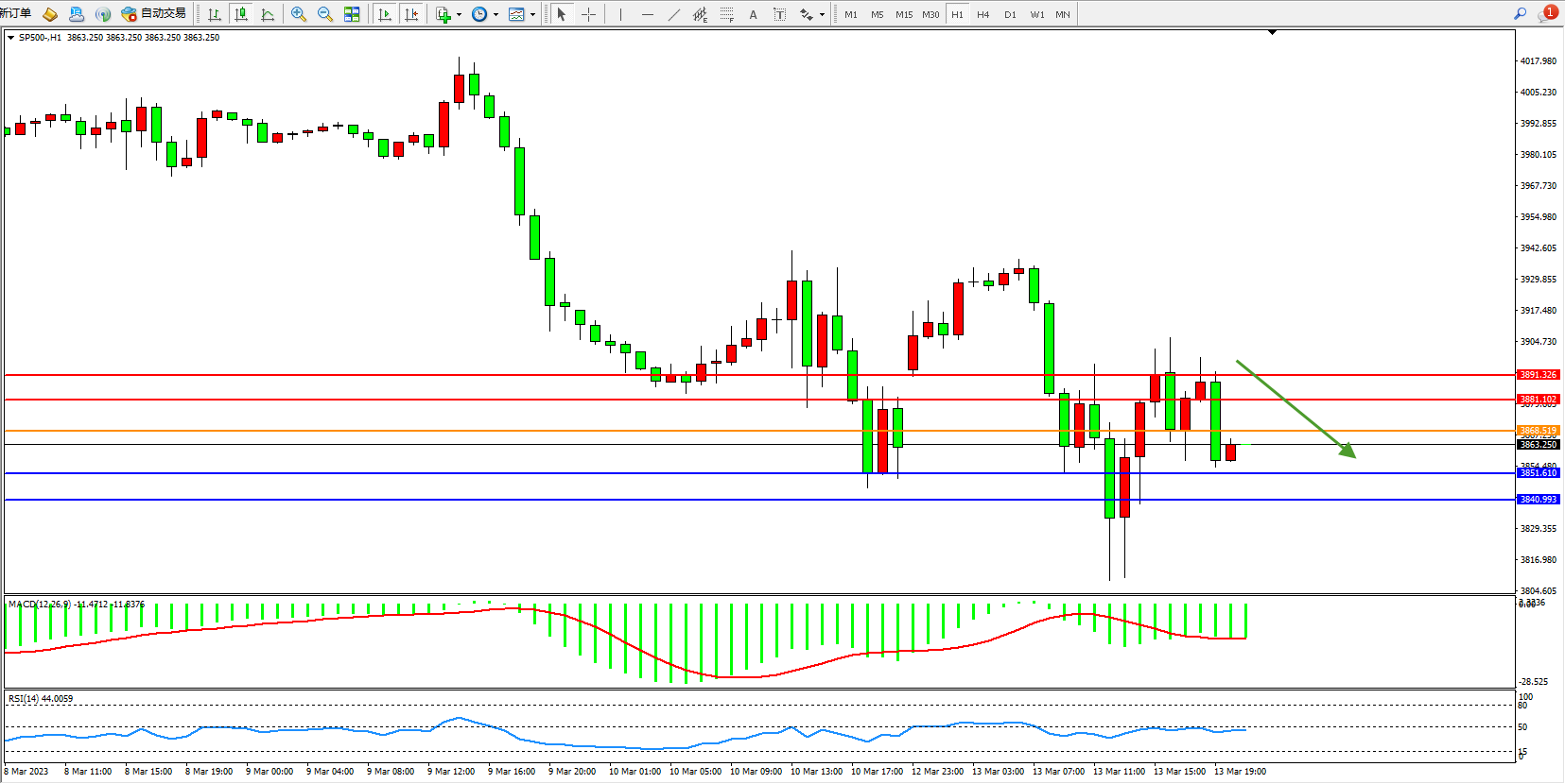 标普SP500——4小时K线图显示: