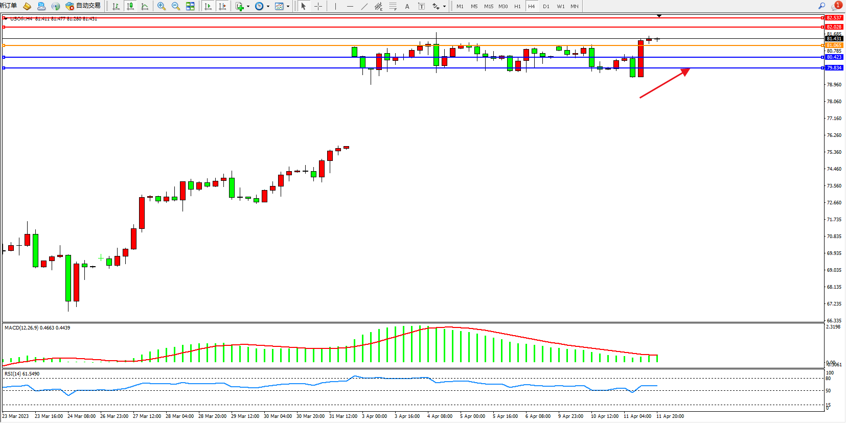 原油维持81.431附近震荡,俄罗斯3月份将原油日产量减少了70万桶,高于承诺的50万桶。削减产量是由于欧盟对俄罗斯产品的进口禁令和价格上限。诺瓦克最初表示,减产只会在3月份进行。但在3月过了三分之二时间,诺瓦克更新了时间表,称减产将会延长。