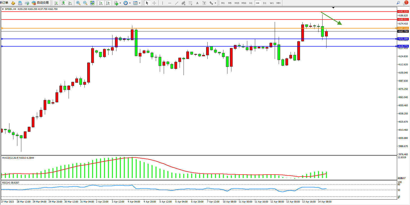 标普500指数4月14日(周五)收盘下跌8.67点,跌幅0.21%,报4137.55点;3月份零售销售数据显示,美国人连续第二个月削减在零售商店和餐馆的支出,这表明消费者在1月份的支出激增后变得更加谨慎。