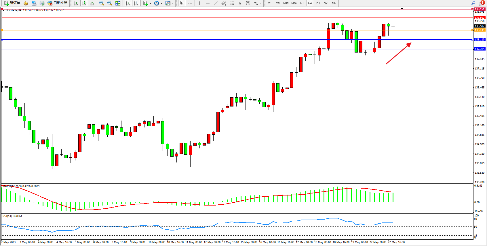 美元兑日圆维持138.587附近震荡,投资者现在等待着美国总统拜登和众议院共和党籍议长麦卡锡周一讨论债务上限问题的关键会议。双方的谈判在上周五突然中断,当时共和党谈判代表退出了会议。虽然会谈最终恢复,但双方都没有提到任何进展,这使美元走低。美元兑日元上周五汇价结束六天连涨,并从六个月高位回撤。