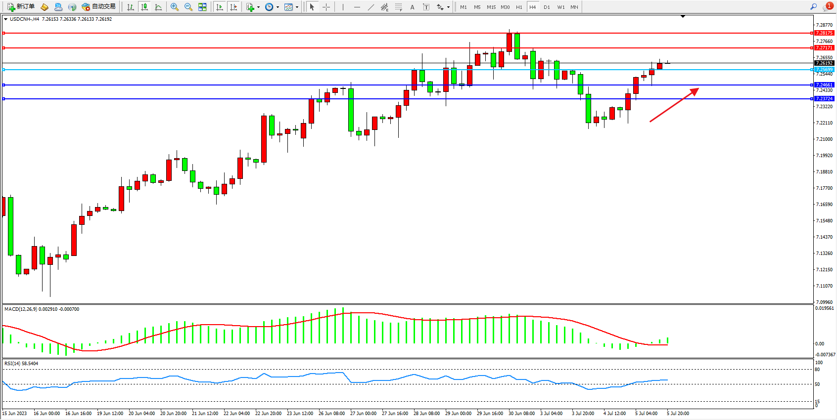 交易策略:7.25699上方看涨,目标7.27171 7.28175