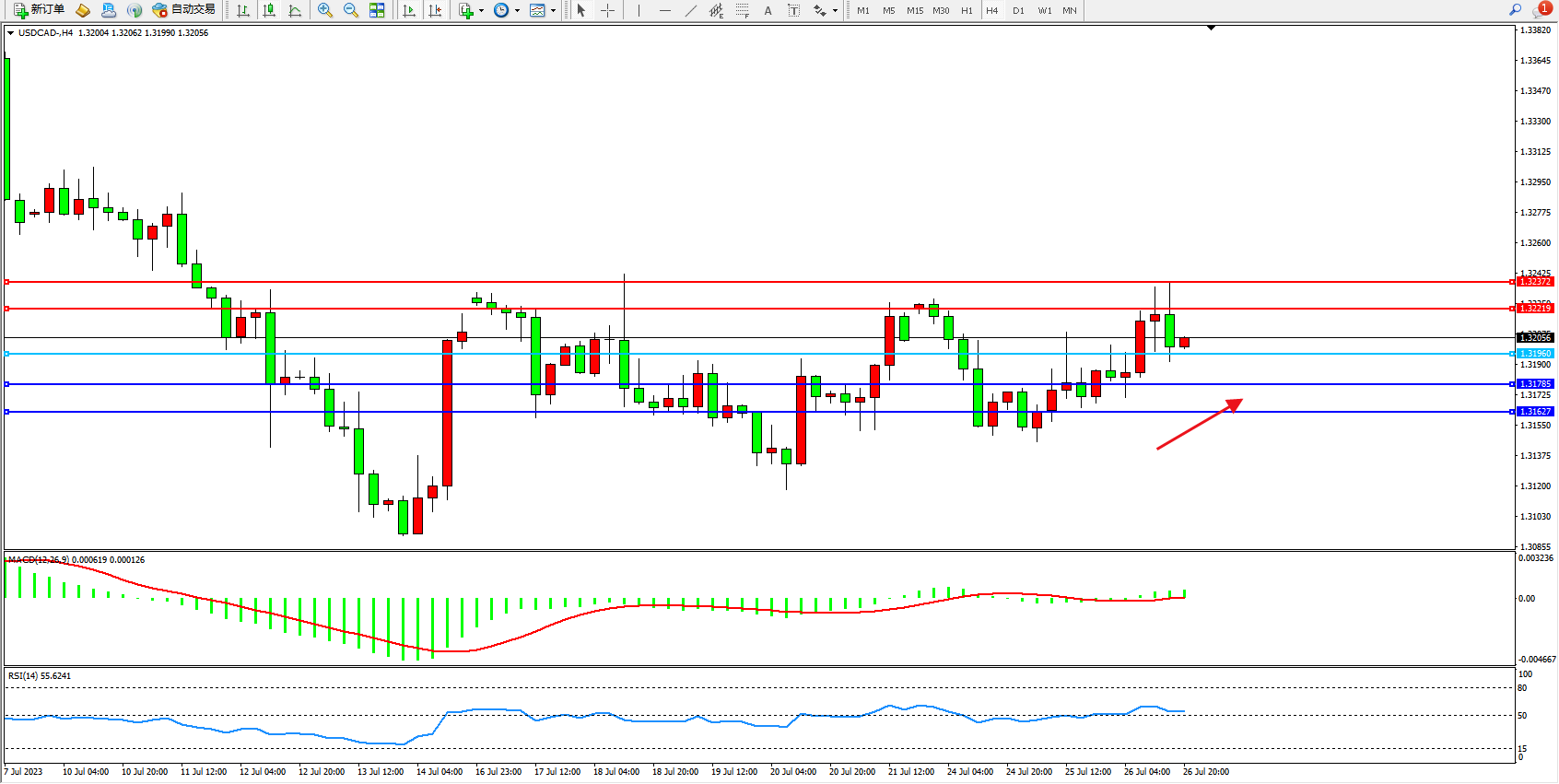 4小时图看:多头动力维持震荡向上移动,短期看涨情绪依旧,市场多头不断拉升,MACD指标处于0轴线上側徘徊,RSI指标处于50均衡线上側弱势整理;