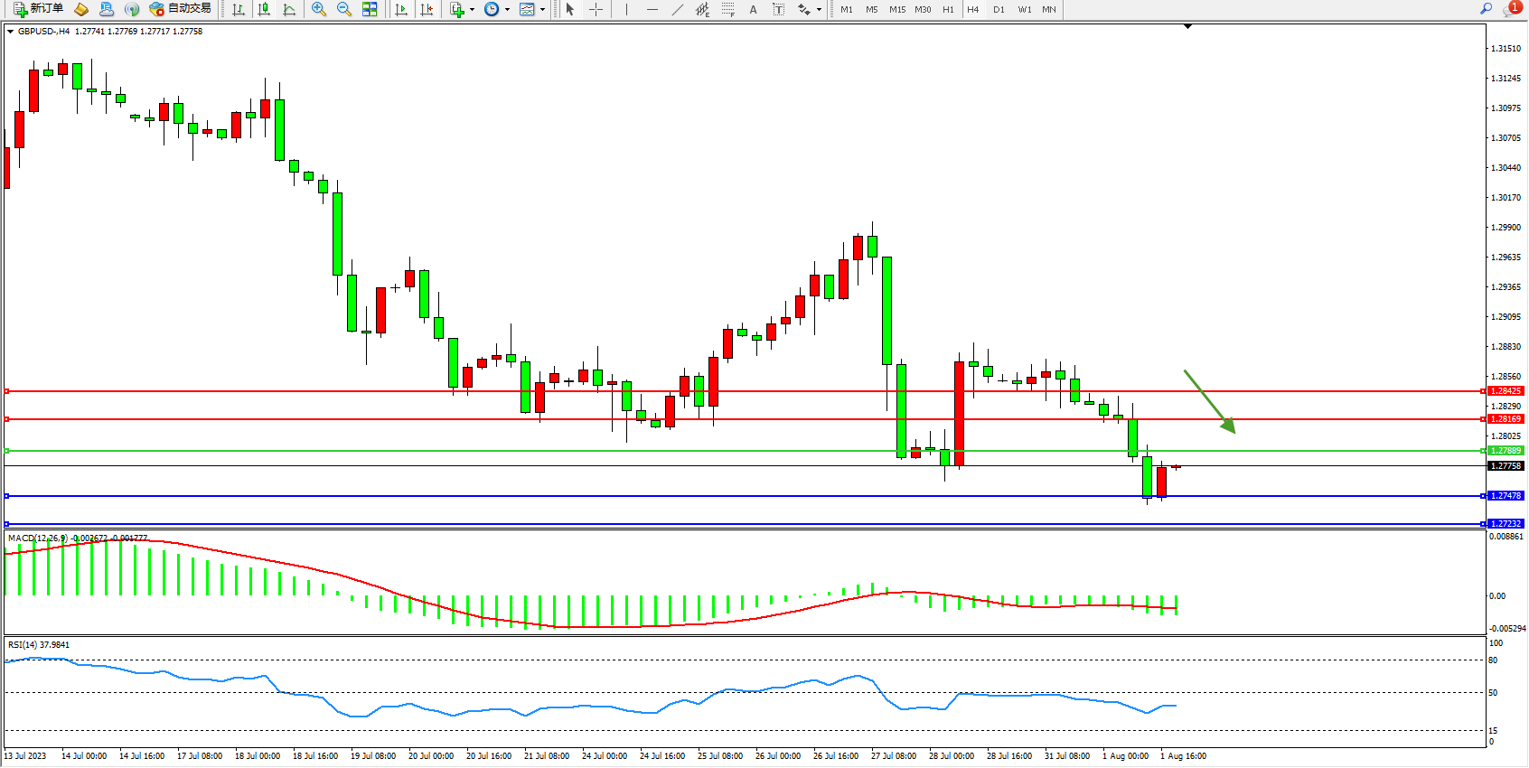 交易策略:1.27889下方看跌,目标1.27478  1.27232