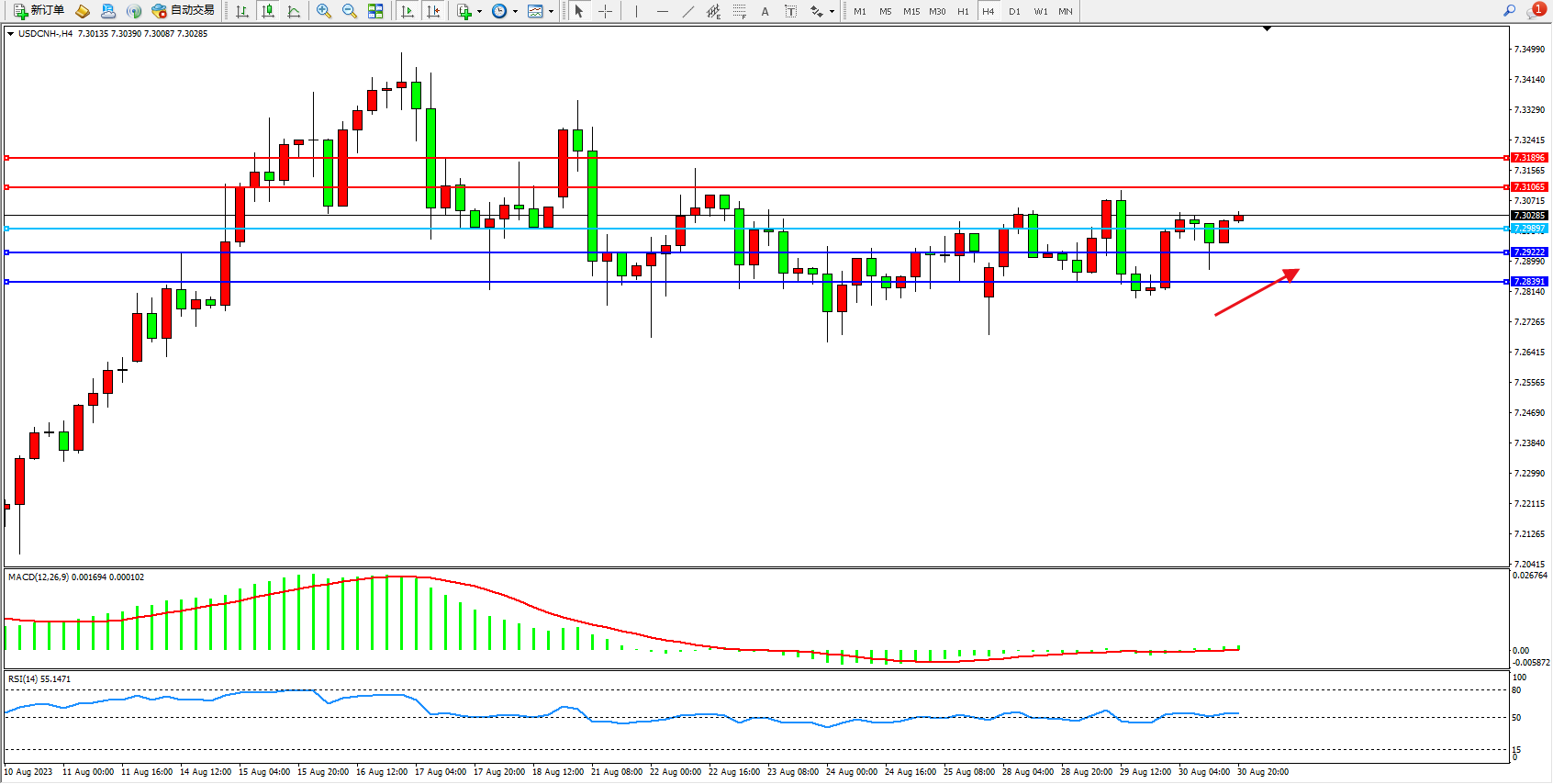 交易策略:7.29897上方看涨,目标7.31065  7.31896