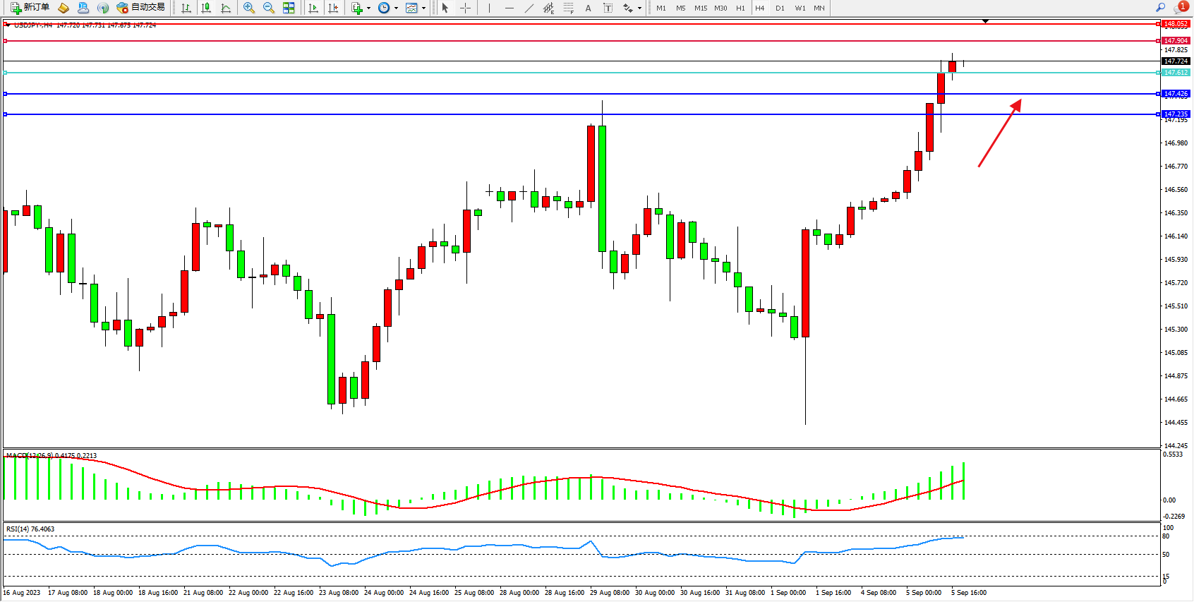 交易策略:147.612上方看涨,目标147.904 148.052