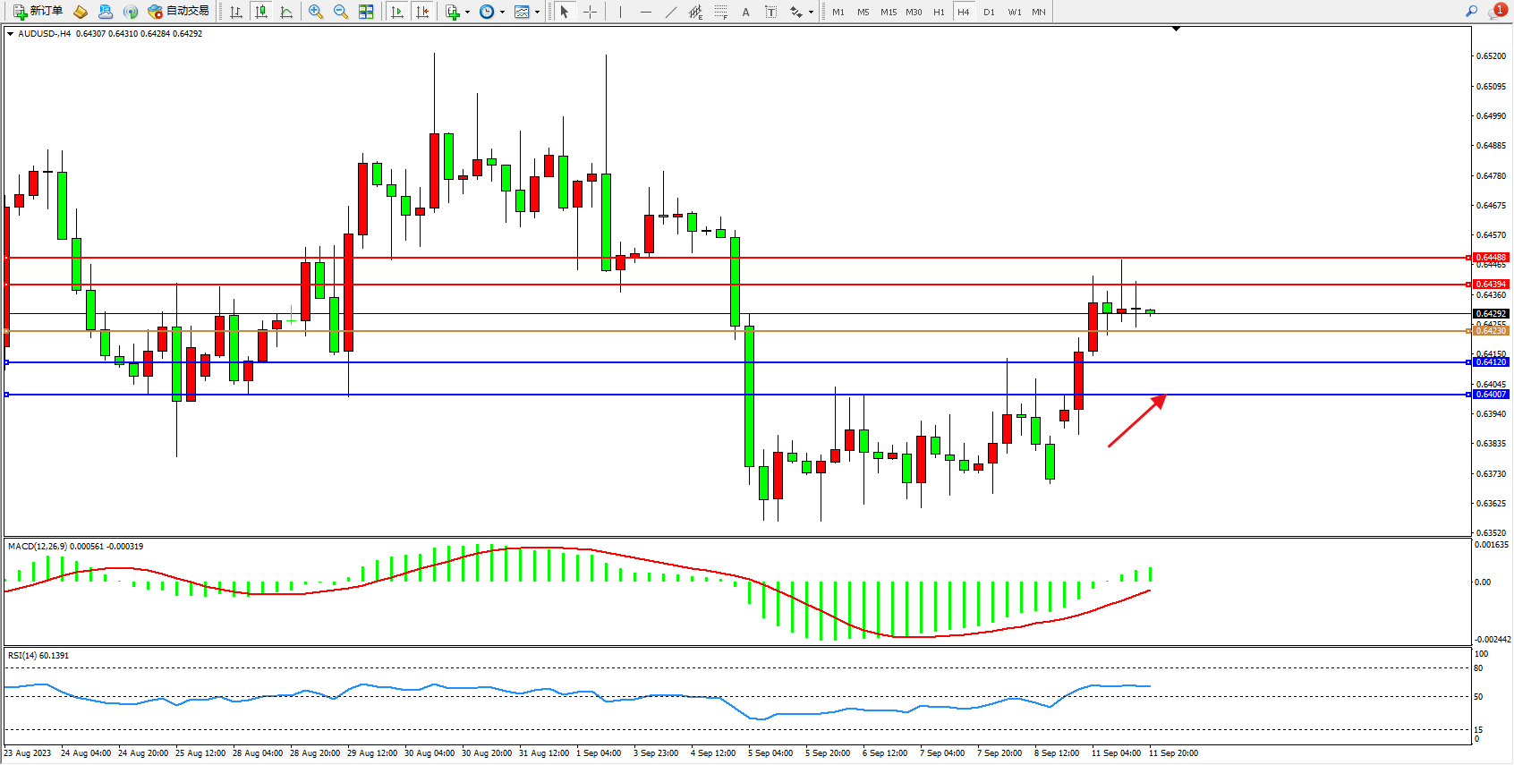 备选策略:0.64230下方看跌,目标0.64120  0.64007