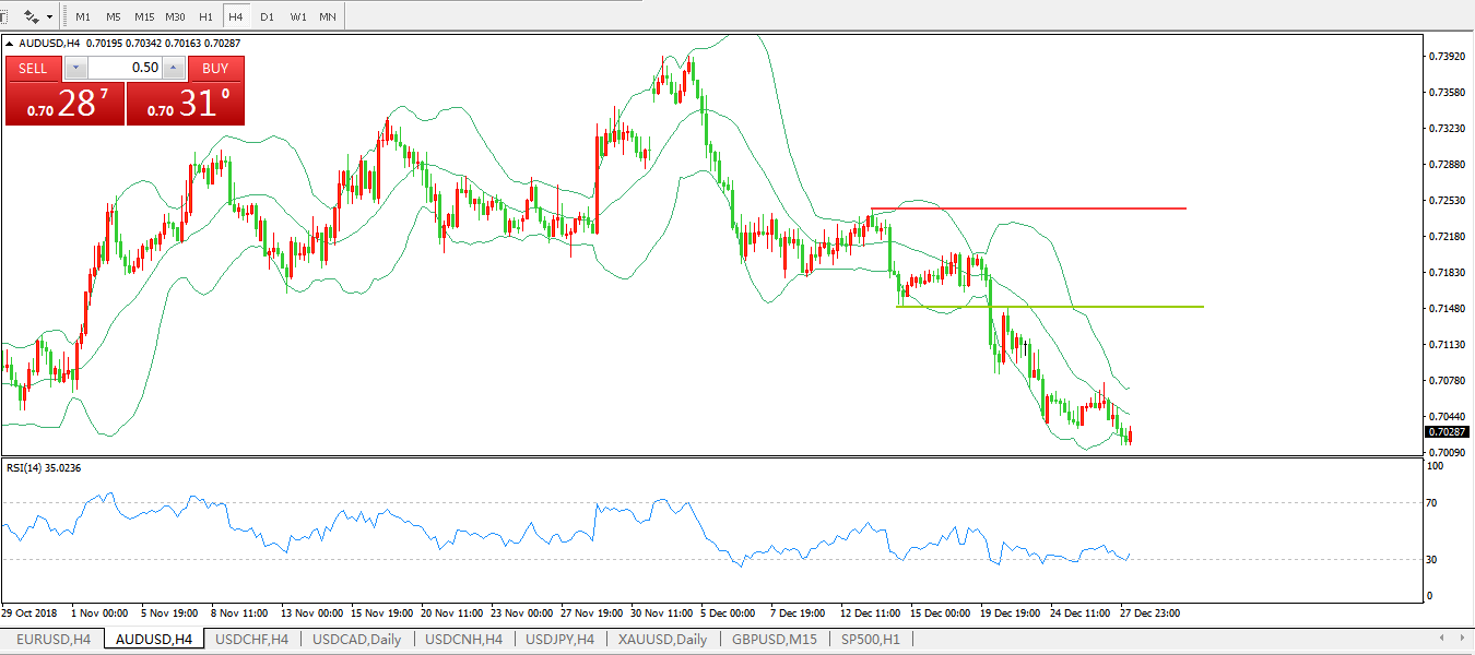 交易策略:在0.7148之下,看跌,目标价位为0.7085,然后为0.7000