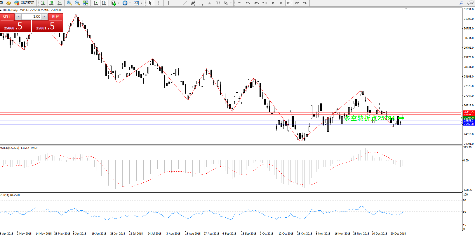 香港股市周一收高逾1%,受到围绕中美贸易关系的乐观情绪以及科技股上涨推动。但2018年整体表现疲弱。恒生指数 .HSI 收高1.3%25,845.70点;恒生国企指数 .HSCE 亦上涨1.3%。港股下午因新年前夕提前休市。美中关系在新年到来之际似乎有所缓和。美国总统特朗普在推特上发文称,他与中国国家主席习近平进行了“非常好的电话长谈”,美国与中国之间正朝着可能达成贸易协议取得很大进展。