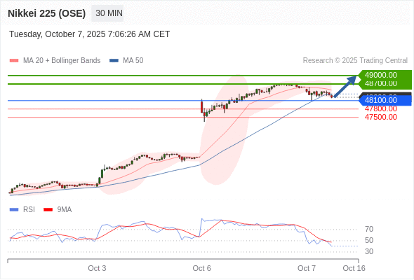 在 48100.00 之上,看涨,目标价位为 48700.00 ,然后为 49000.00 。