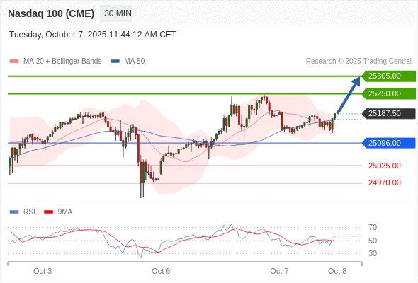 在 25096.00 之上,看涨,目标价位为 25250.00 ,然后为 25305.00 。