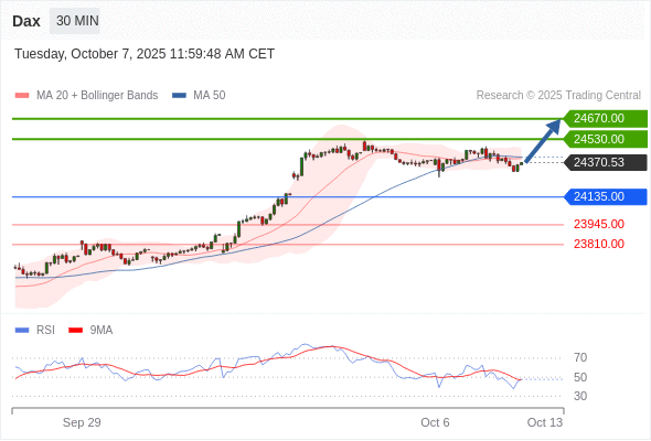 在 24135.00 之上,看涨,目标价位为 24530.00 ,然后为 24670.00 。