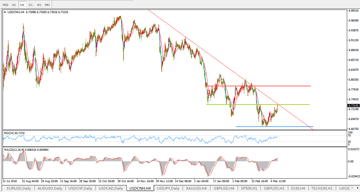 美元兑人民币USDCNH  4小时图: