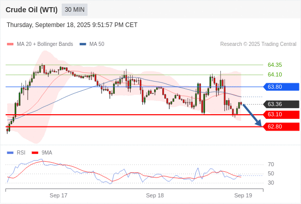 在 63.80 之下,看跌,目标价位为 63.10 ,然后为 62.80 。