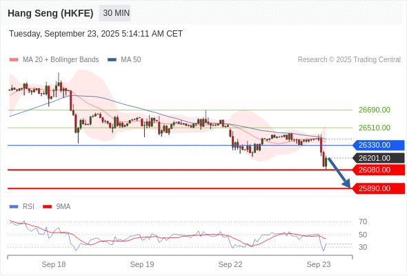 香港恒生指数期货 当日内: 短期关键阻力位在26330.00。