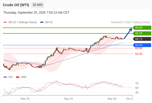 在 64.10 之上,看涨,目标价位为 65.25 ,然后为 65.80 。