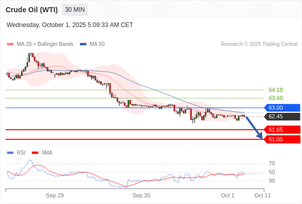 在 63.00 之下,看跌,目标价位为 61.65 ,然后为 61.05 。