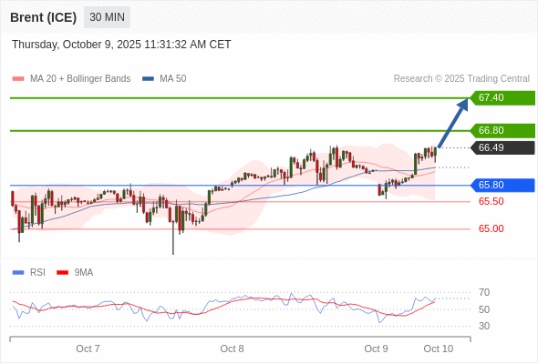 在 65.80 之上,看涨,目标价位为 66.80 ,然后为 67.40 。