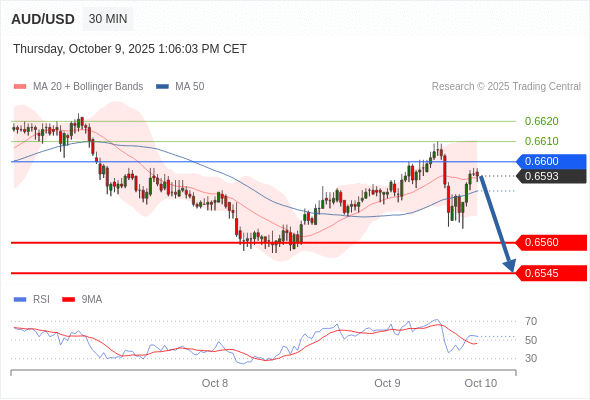 在 0.6600 之下,看跌,目标价位为 0.6560 ,然后为 0.6545 。
