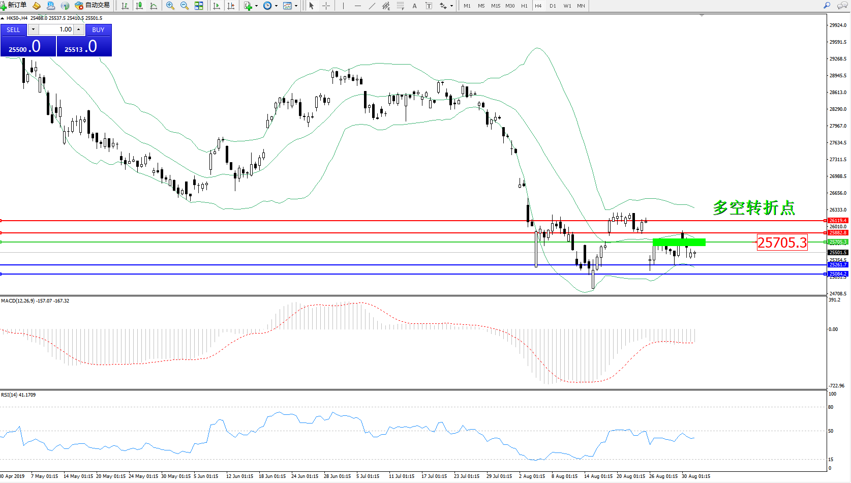 香港恒生指数9月2日(周一)收盘下跌98.18点,跌幅0.38%,报25626.55点;港股焦点将集中于经济数据身上。内地制造业PMI数据逊预期,本周美国亦会公布就业数据,料会对美国经济以至联储局月中议息有更大启示。依然对后市看法审慎,回落至25,000点机会相当高,亦重申现水平值搏率不高,部署上仍以逢反弹减持。港股早上低开95点后,虽曾收窄跌幅,唯市场沽压稍大。随后再逐步向下扩大跌幅,恒指低见25502,最多跌222点。恒指在8月份跌2053点,跌幅近7.4%,为全球股市最差的市场。主要是受到外围及本土坏消息所影响。从目前来看,总体局势趋于平淡。美股业绩期逐渐进入尾声,所以接下来由业绩主导的上涨也基本不会出现。