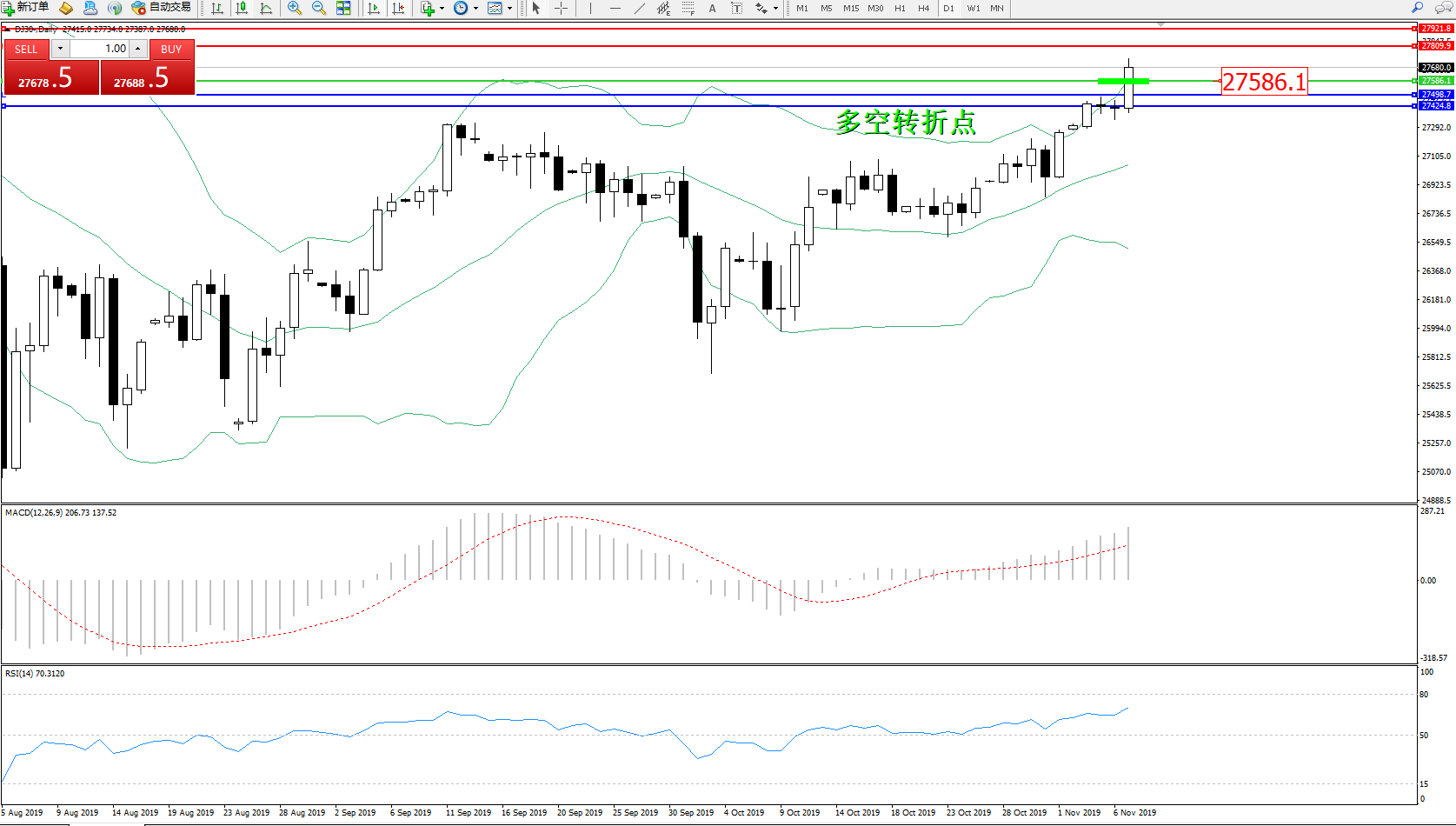 技术点评:多头强势拉升突破历史高位,延续布林带指标上轨不断上移中,多头未有止步迹象,且布林带指标呈张口态势,MACD指标多头区域维持缓慢上行走势,RSI指标处于多头区域不断平缓走强;