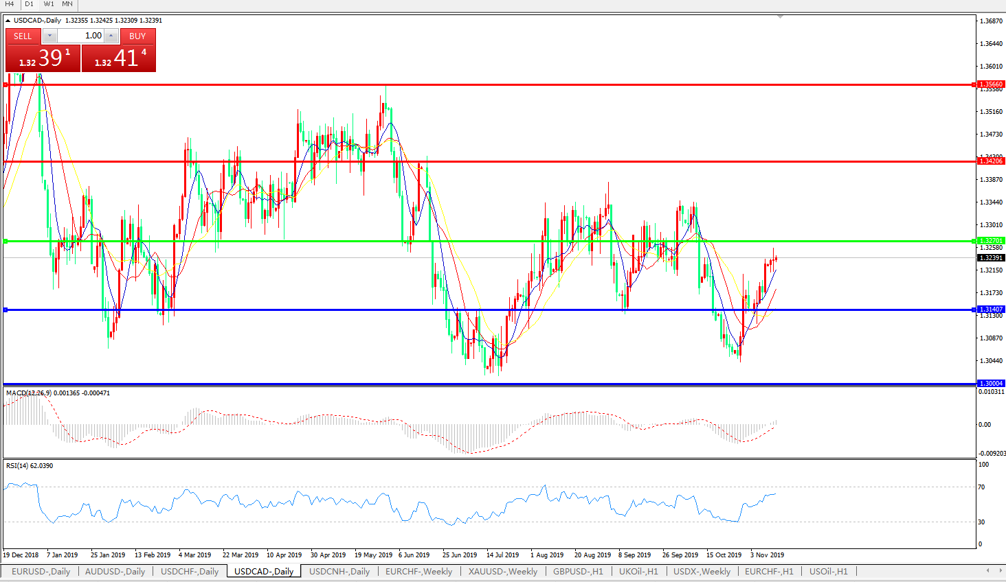 美元兑加元USDCAD 日线图:
