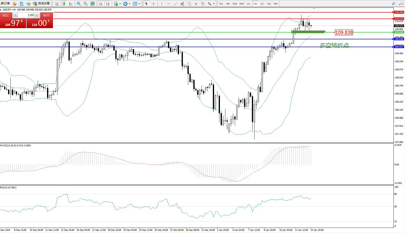 交易策略:109.838上方看涨,目标110.114110.250