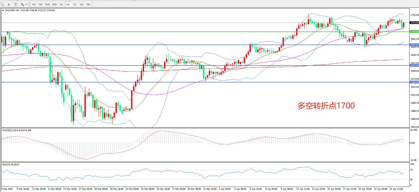 交易策略:在1700.00 之上看涨,目标1750.00   1785.00