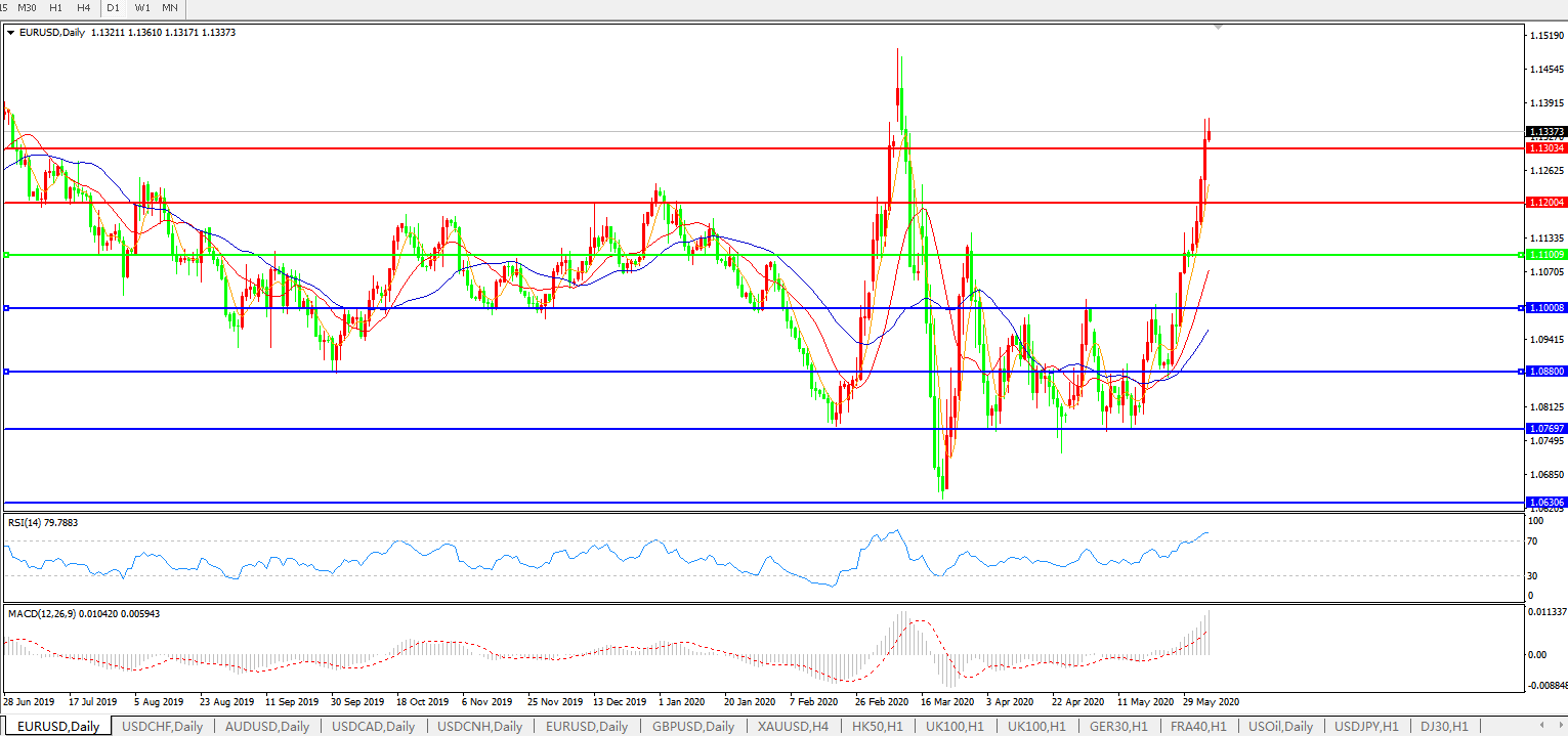 技术面简析:日图均线呈有序多头排列,汇价继续大幅飙升冲高,MACD运行于0轴上方且量能0轴上方持续放量 ,RSI进一步走升,预计短期汇价大概率将进一步走升。