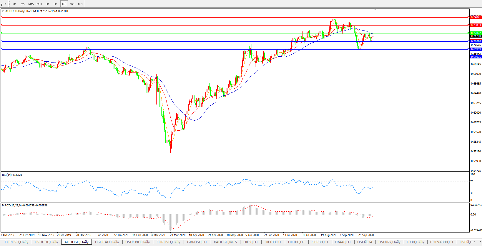 备选策略:0.7200上方看涨,目标0.7300、0.7400