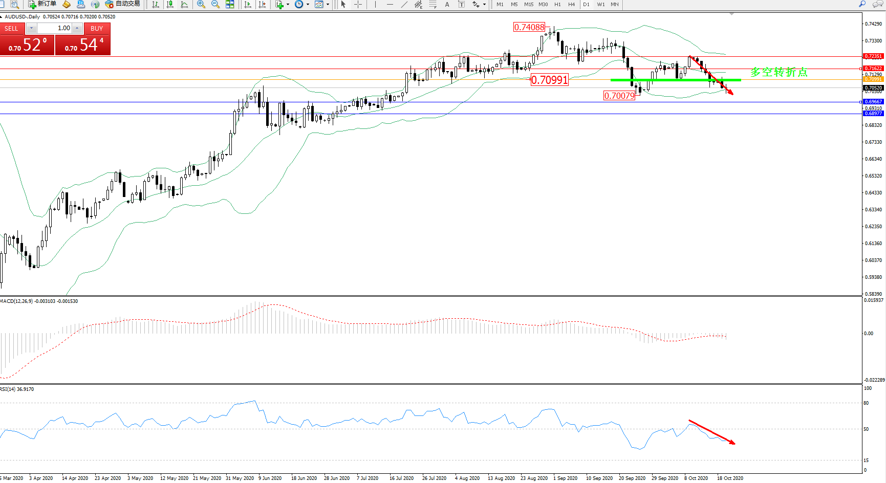 备选策略:0.70991上方看涨,目标0.71622、0.72351