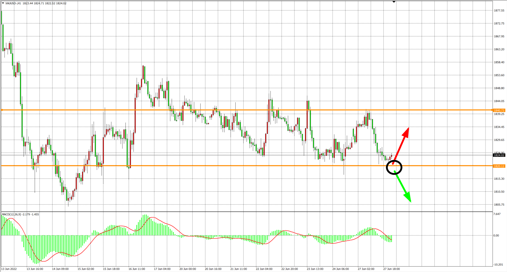 交易策略:在1820.00之下看跌,目标1810.00 1800.00