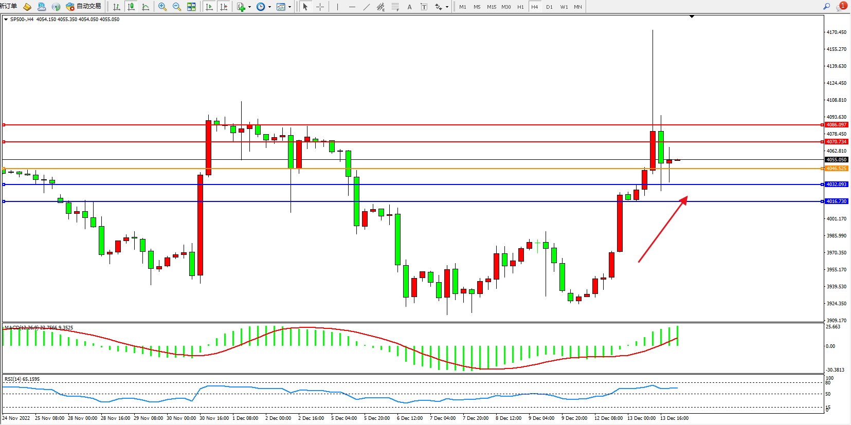标普500指数12月13日(周二)收盘上涨28.74点,涨幅0.72%,报4019.30点;美国劳工部公布11月的通胀数据明显低于预期和前值,夯实美联储鹰派政策松动预期。