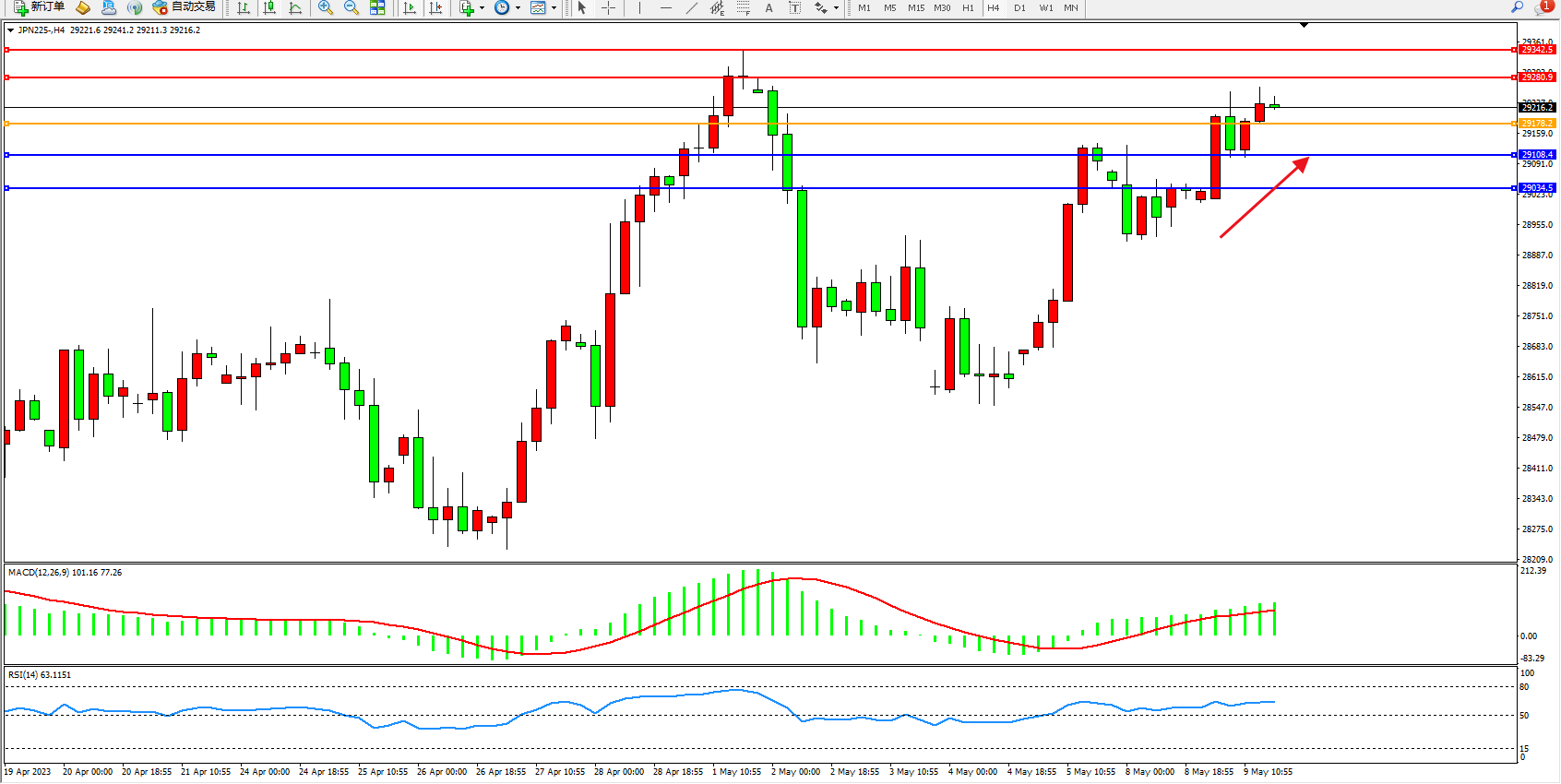 日经225指数5月9日(周二)收盘上涨287.00点,涨幅0.99%,报29245.50点。日本总务省9日公布的2022年度家庭收支调查结果显示,两人以上家庭每户月均消费支出为293,671日元(约合人民币1.5万元),剔除物价变动因素后实际比上年度增加0.7%,连续两年增加。名义增幅为4.5%,创有可比数据的2001年度以来最高纪录。